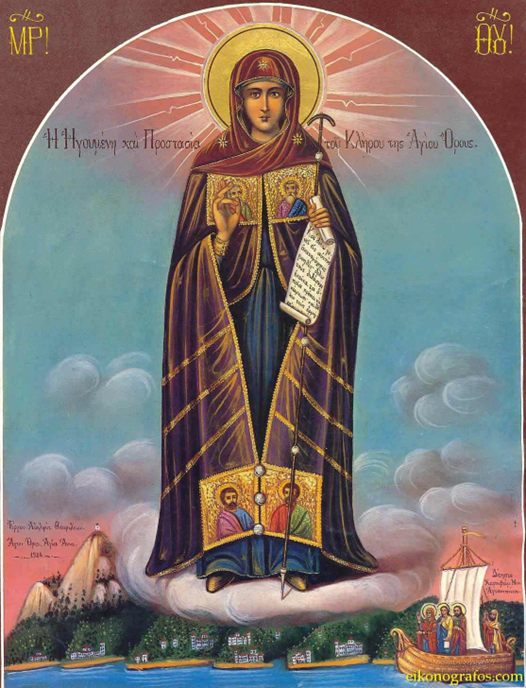 In addition, Mary prayed for the blessing of Athos, that the Lord would have mercy on it and keep it free from harm until the end of the world along with its inhabitants. Because of the event leading the Virgin Mary to Mt. Athos, this land dedicated to this day is dedicated to the Most Holy Virgin Theotokos.